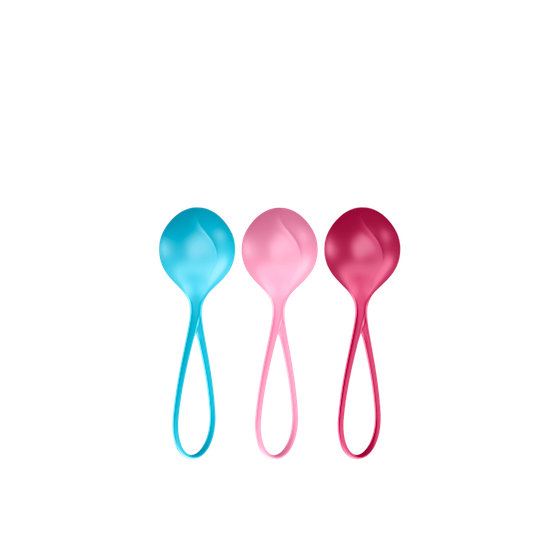 Wearing the Strengthening balls for 15 minutes a day trains your pelvic floor muscles - the muscles that enable you to experience breathtaking orgasms. This intro set includes 3 variable weights to support a gradual training of your pelvic floor.