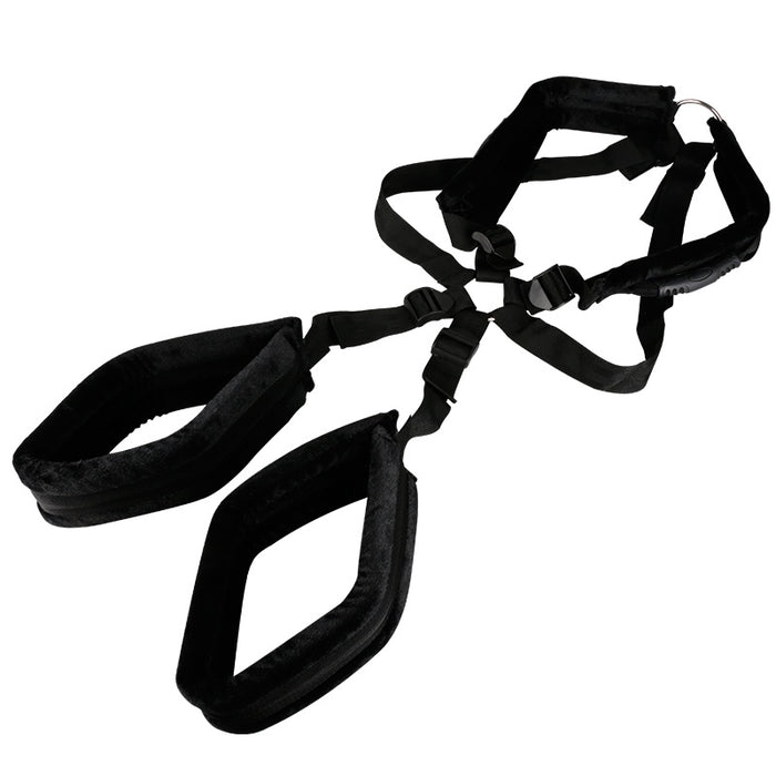 Weightless sex in almost any position can become a reality easily with the Everyday Sexy Sex Harness Love Swing. This unique lovers tool gives you all the freedom of movement and adventurous positioning without bulky swings, pillows or other sex furniture. The simple over-the-shoulder design straps your partner in so you can effortlessly support and maneuver them around for incredibly, previously difficult positions. All you need to do is slide your lovers legs into the padded thigh straps, while they grab hold of the easy grip chest handles, and you're ready to ride. The straps fit most sizes, since they adjust, while the padded neck strap takes the strain off the wearers back and shoulders. Enjoy!