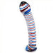 This three-striped dildo is made of glass; a non-porous and body safe material ready to be run under warm water to heat it up or chilled in the freezer to cool it down so you can experience different sensations. Just apply the lube of choice to it to maximize your pleasure.