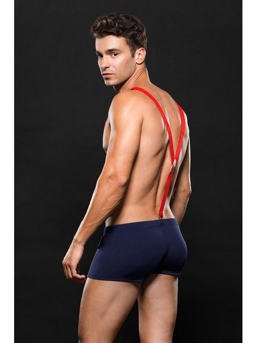 Somebody call 99-fine, because this fireman's trunk and braces set is almost too hot to handle. Gorgeously soft shorts hug your hips for a snug, se...