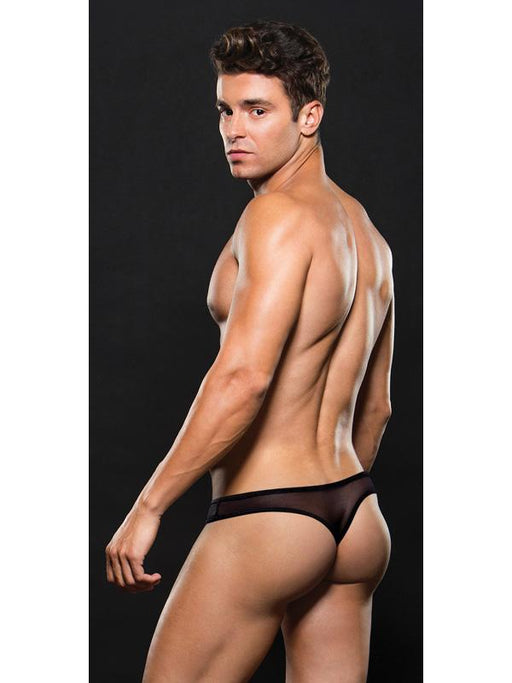 The front of this ENVY MENSWEAR thong hardly gives a clue to the frisky design details at the back! Designed in black mesh and nylon, the front fea...