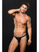 The front of this ENVY MENSWEAR thong hardly gives a clue to the frisky design details at the back! Designed in black mesh and nylon, the front features smooth lines and thin band low across the hips, while the back features a lace-up element, tying the thong together.