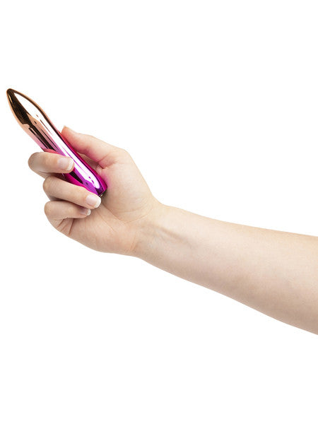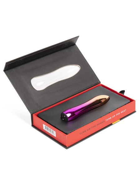 Experience a fusion of intense vibrations and gentle warmth with this versatile bullet. The Aluminium’s rainbow ombre finish and new 60SX AMP proprietary motor—which commands 12 vibration speeds—make it ideal for the trend-driven user who craves power.