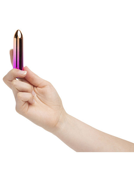 Experience a fusion of intense vibrations and gentle warmth with this versatile bullet. The Aluminium’s rainbow ombre finish and new 60SX AMP proprietary motor—which commands 12 vibration speeds—make it ideal for the trend-driven user who craves power.