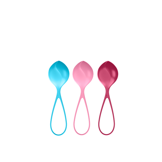 Wearing the Strengthening balls for 15 minutes a day trains your pelvic floor muscles - the muscles that enable you to experience breathtaking orgasms. This intro set includes 3 variable weights to support a gradual training of your pelvic floor.