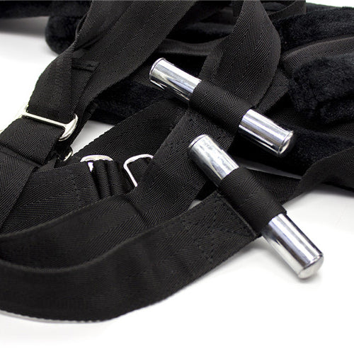 Swing into passionate pleasure with the Everyday Sexy Door Slam Love Swing! Setup takes mere seconds, and transforms any doorway into a perfect play space to get creative. With two firm plastic stoppers that hold tight, two soft, padded thigh cuffs, and adjustable handles for a secure grip, this swing can support up to 250lbs (113.4kgs) of hot lovin'! No assembly, no fuss, just slam and satisfy.