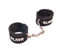 Soft furry wrist restraints with diamante word 'SLAVE'.