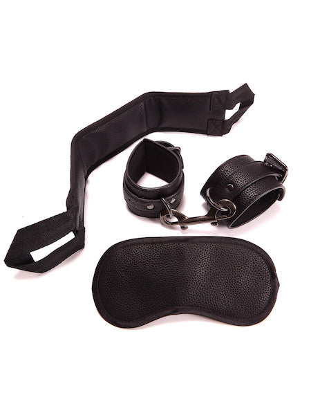 The kit contains an eye mask, handcuffs for those who prefer to be dominated, and a blowjob strap that helps to control the pace.