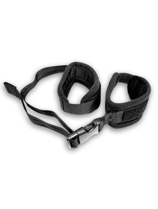 Handcuffs never felt so good! The Sex and Mischief Adjustable Handcuff are soft and sturdy cuffs with easy on and off closures that connect with a nylon strap that adjusts to up to 2 feet. So much fun, you'll want to play adult bondage games all day. Don't let your lover get away! 1 pair of soft sturdy cuffs with easy-on easy-off closures connect with a nylon strap that adjusts up to 2 feet (61 cm.)